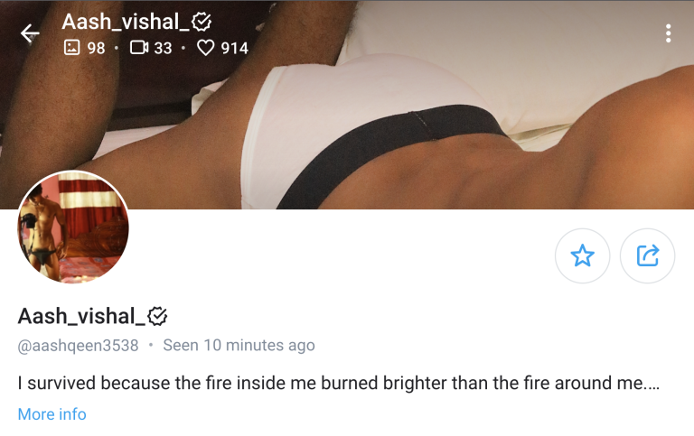 Aash Vishal is an Onlyfans gay Indian model who is passionate and engaging. When you subscribe to Aash Vishal, you have access to nearly 100 photos, over 30 videos, and nearly 1000 likes.