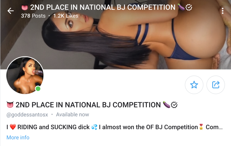 7. Goddess Santo – 2nd Place College Girl OnlyFans BJ Competition Winner