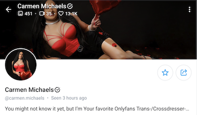 Carmen Michaels is a kind and skilled crossdressing Onlyfans model who is always eager to show off her skills and provide tips and guidance to those looking to express their femininity. Carmen’s passion for crossdressing is evident in every word, post, and photo she creates. Her Onlyfans account features nearly 500 photos and is free to follow. Carmen can also be found on Youtube and Instagram.