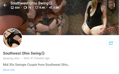 Southwest Ohio Swing is a real-life swinger couple with over 3.6K subscribers and 8.3K likes. They offer over 600+ media files of NGOT MILF PAWG (naughty girl of twitter, mom I’d like to fuck, phat-ass white girl) content. Although they are real-life swingers, they ask that you do not request meet-ups. You can also purchase inbox messages and items from the tip menu. Tips are always appreciated, as the content on this page can only stay free with support.