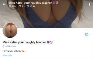 Miss Katie loves to interact and sext with her subscribers. She will also rate your cock if you send her a good tip and a nice pic of it.