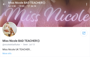 Miss Nicole Bad Teacher is a UK MILF teacher who posts three pictures or videos daily on her page. She has 26.1K likes and 3.3K+ pics and vids on her page. Her subscription fee is $8.99 per month.