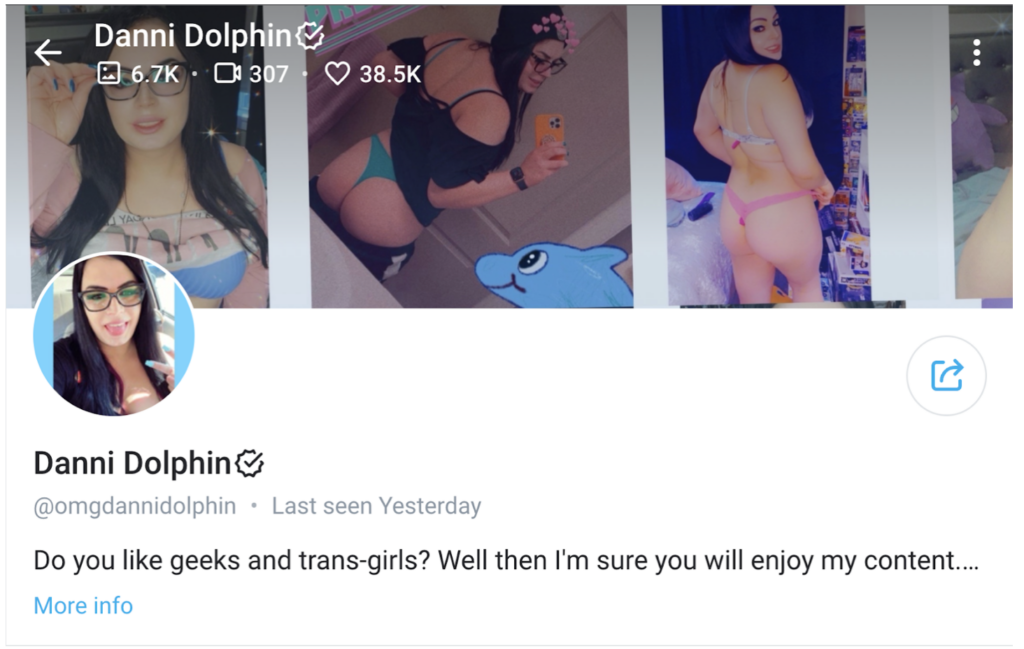 Danni Dolphin is a fun-loving trans girl from Canada who is known for her stylish glasses and innocent charm. She is considered one of the hottest trans girls on OnlyFans and is a must-follow for anyone looking for steamy content. Her videos are sure to satisfy and make you wish she lived next door to you.