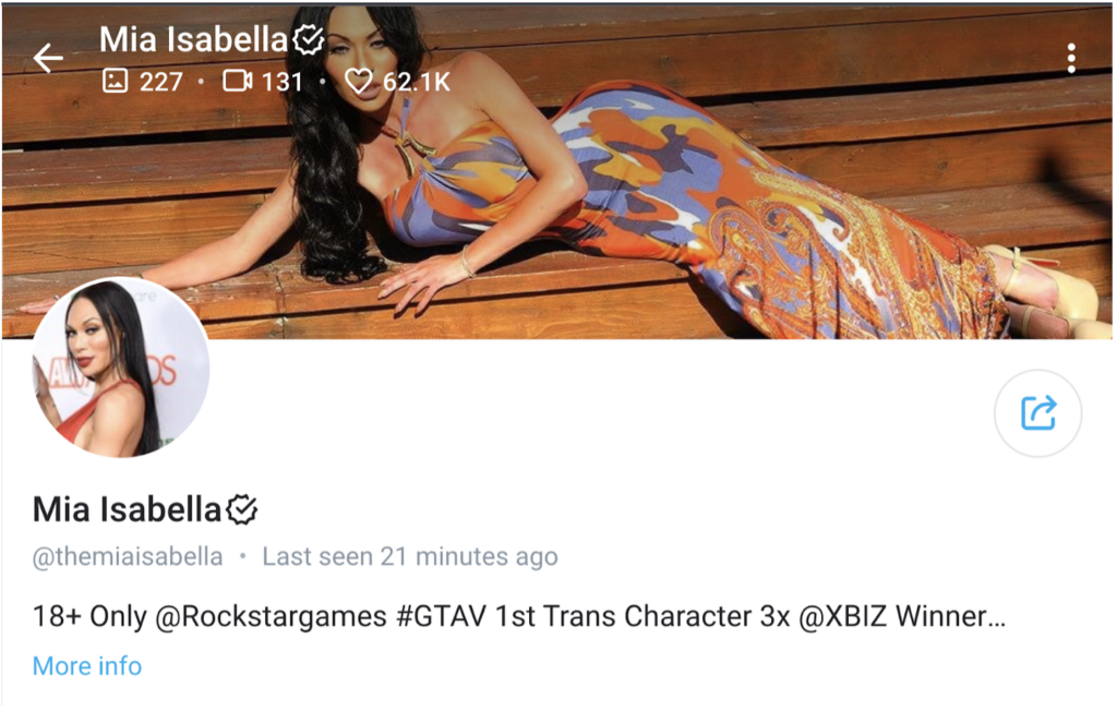Mia Isabella is a Chicago-born trans girl who has won three Xbiz awards for her talents in adult entertainment. She is known for her lovely brown hair and impressive girl cock. Her OnlyFans page is a must-follow for anyone looking for some hot and steamy action.